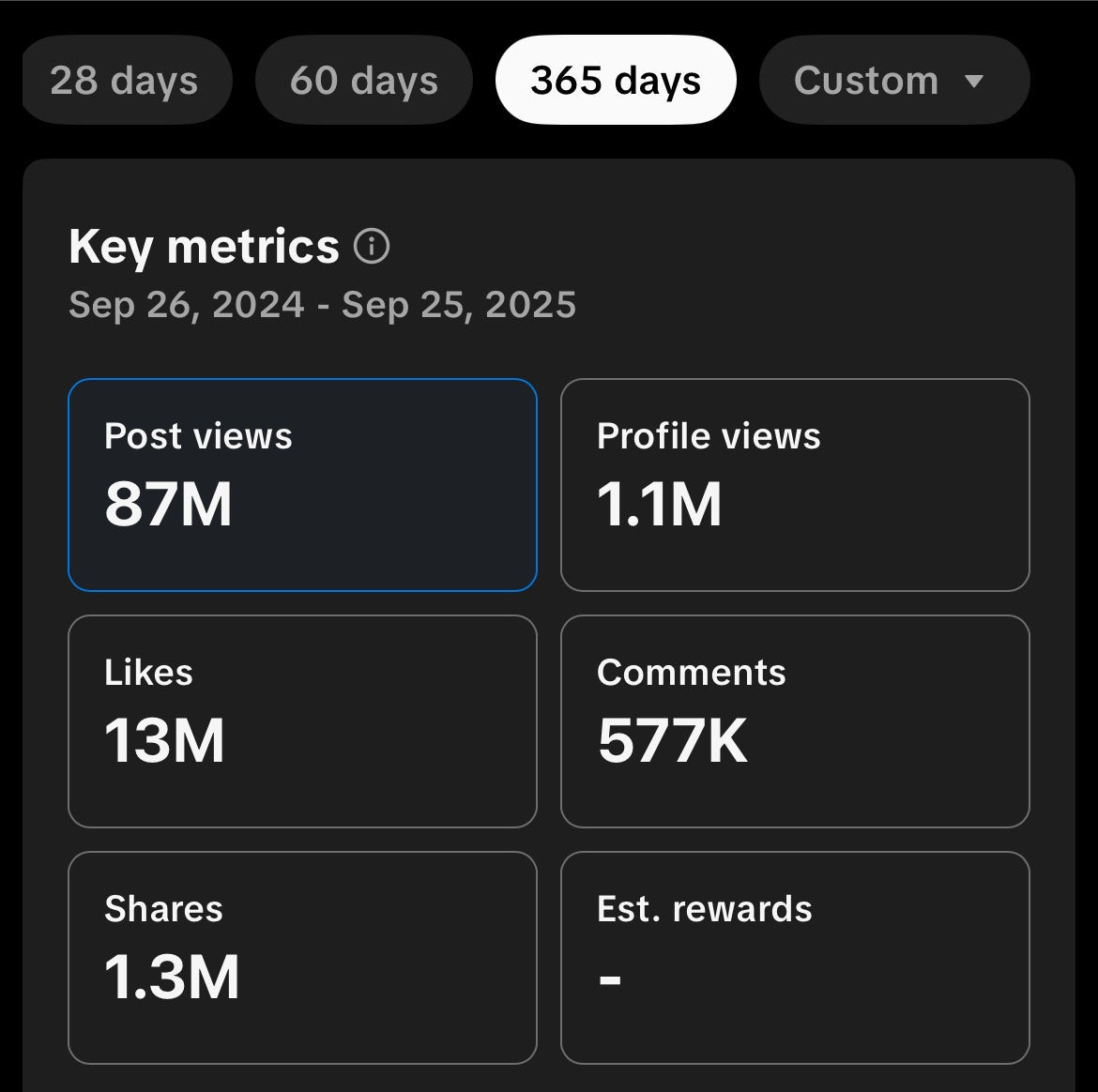 Yearly stats (Sep 2024 to Sep 2025)